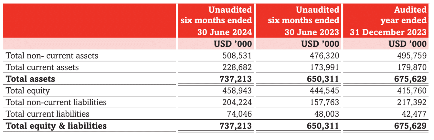 The cash balance at 30th June 2024 was USD 139.1 million compared to the balance of USD 83.8 million as at 30th June 2023.